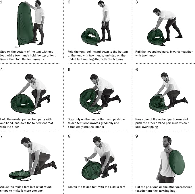 • MULTIPURPOSE PRIVACY TENT - This versatile shelter with a removable bottom can be used as an outdoor shower enclosure, changing room, portable bathroom, or pop up privacy tent for sporting events, conventions, camping, or road trips.