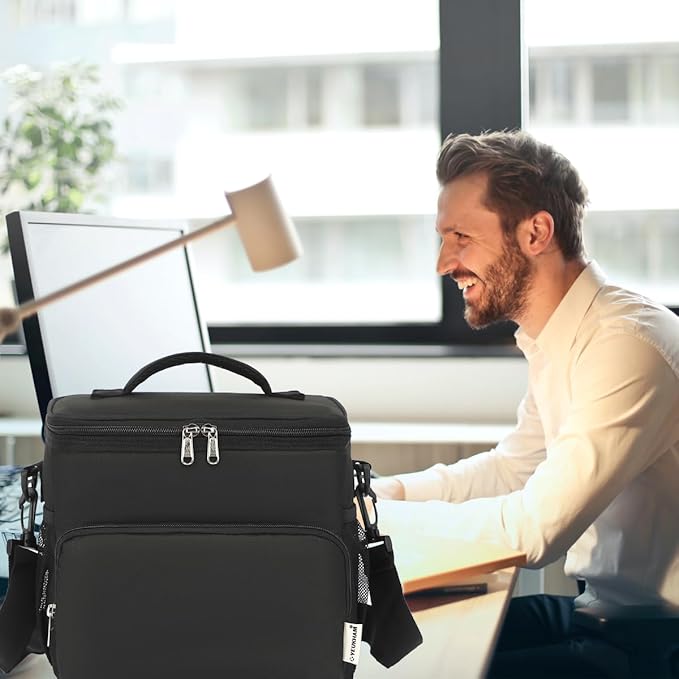 Unisex Insulated Lunch Bag, Black, 10.2 x 7.5 x 9 inches, Durable Oxford Fabric, PEVA Lining, 3+ Years