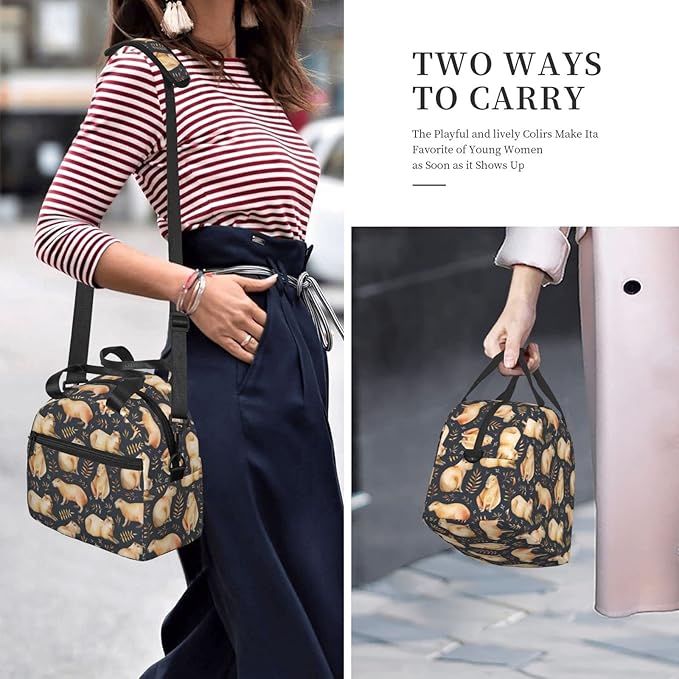 bassyil Capybaras Lunch Box Reusable Insulated Totes Lunch Bag Thermal Cooler Adjustable Shoulder Strap Bag for Men Women