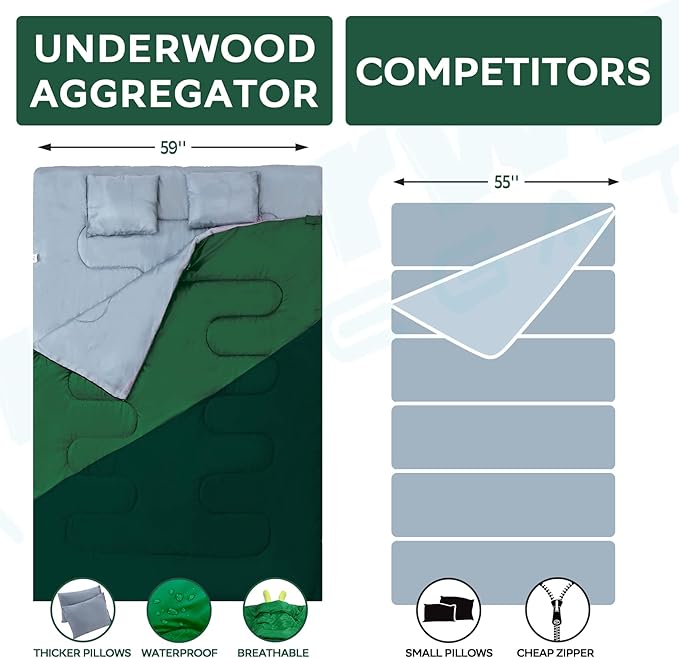 • BETTER CUSTOMER SERVICE: The Underwood Aggregator sleeping bag for men undergoes rigid inspection before its departure from the factory. Should you have any problems with the sleeping bag for 2 person, please don't hesitate to contact our customer support team. We are ready to help and happy to hear from you. Your satisfaction, our responsibility