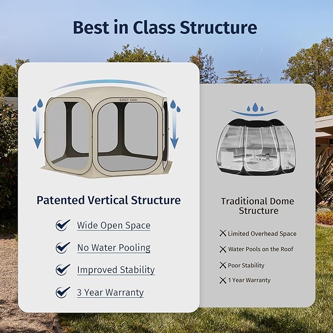 • ๐—•๐˜‚๐—ด-๐—ฃ๐—ฟ๐—ผ๐—ผ๐—ณ & ๐—ฉ๐—ฒ๐—ป๐˜๐—ถ๐—น๐—ฎ๐˜๐—ฒ๐—ฑ: The EAST OAK portable pop-up screen teent features a 4-sided B3 fine mesh design for 360ยฐ perfect ventilation to protect you from mosquitoes, bugs and anything the outdoors can throw at you. The tent body is made of high-quality Oxford fabric with anti-UV silver coating to achieve all-day UPF 50+ UV protection. Perfec for picnics, camping, and the beach