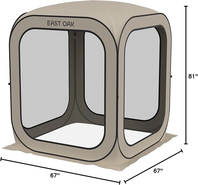 • ๐—•๐˜‚๐—ด๐˜€-๐—ฃ๐—ฟ๐—ผ๐—ผ๐—ณ ๏ผ† ๐—ฉ๐—ฒ๐—ป๐˜๐—ถ๐—น๐—ฎ๐˜๐—ฒ๐—ฑ ๐—ฆ๐—ฝ๐—ฎ๐—ฐ๐—ฒ : The EAST OAK portable pop-up screen tent features a 4-sided B3 fine mesh design for 360ยฐ perfect ventilation and can protect you from mosquitoes or other bugs. The tent body is made of high-quality Oxford fabric coated with silver to achieve all-day UPF 50+ UV resistance. Ideal for creating a comfortable and protected resting space during various outdoor activities (picnics, camping)