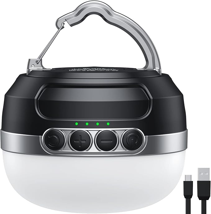 • A 10400mAh Power Bank: Last up to 420 hours after a full charge (at the lowest brightness ) , equiped with a 10400mAh battery, this camping light will charge your phone during your camping/hiking. It's also a nice choice to place it in your bedroom in case of hurricanes or power outages.