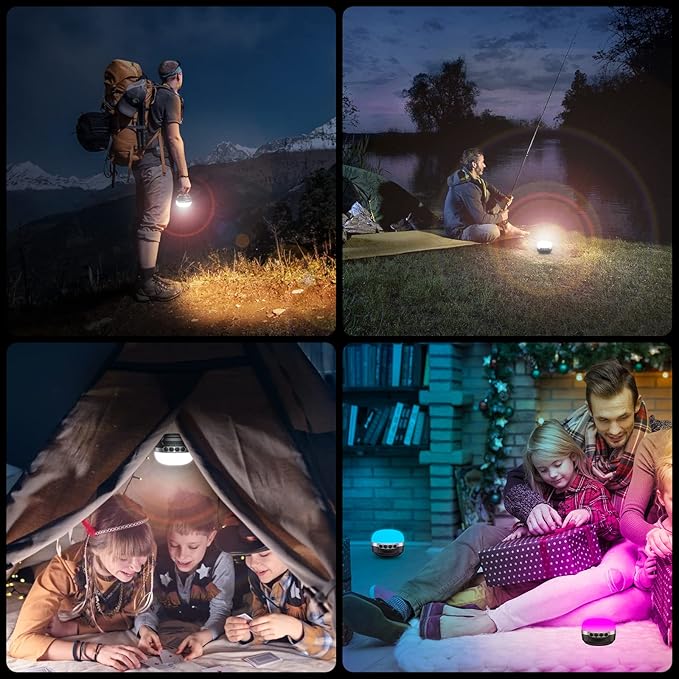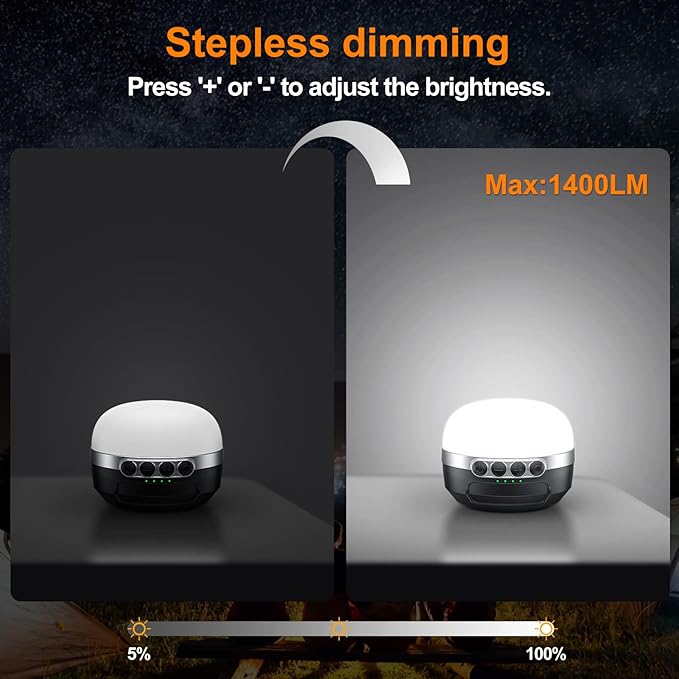 • A 10400mAh Power Bank: Last up to 420 hours after a full charge (at the lowest brightness ) , equiped with a 10400mAh battery, this camping light will charge your phone during your camping/hiking. It's also a nice choice to place it in your bedroom in case of hurricanes or power outages.