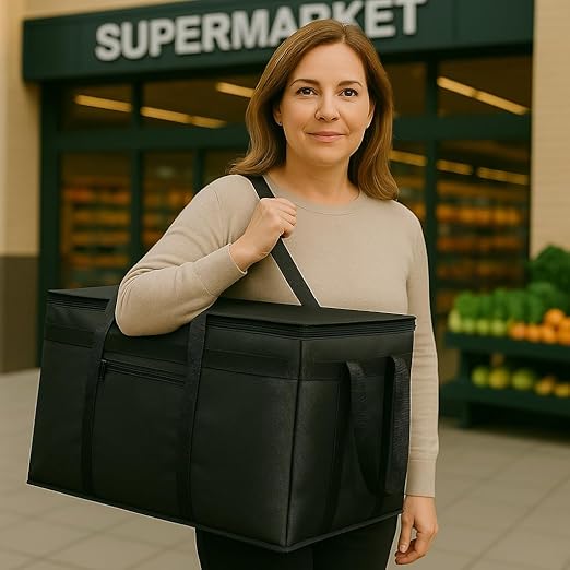 • [XXXL LARGE]: Spacious insulated bags - Size: 23W x 15H x 14D inches. Fits 50 bottles of 500ml Cola. Great for food delivery and grocery shopping