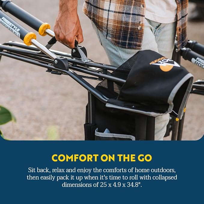 • OUTDOOR LIVING. Great for relaxing by the campfire or sideline, the Freestyle Rocker XL from GCI Outdoor is an oversized adult rocking chair that's easy to carry and foldable. Enjoy comfort on your adventures with smooth rocking on any surface, anywhere.