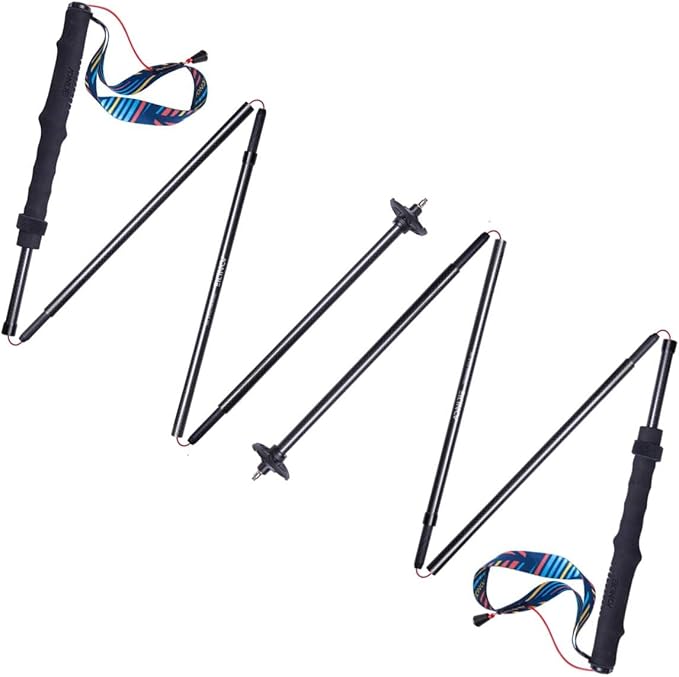 • 【Drawstring Locking Technology】Collapsible hiking poles feature drawstring locking technology, which makes it easy to adjust and lock into place in just a few seconds. Simply pull upward to securely hold the poles in place and prevent them from slipping, providing you with ultimate stability.