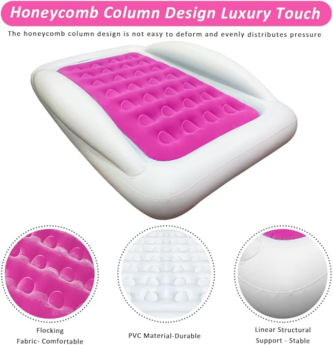 • DURABLE HONEYCOMB FLOCKING DESIGN: The kids travel bed air mattress is adapt premium quality of PVC or other qualified materials, with built-in leak-proof valve include which can with stand high pressure. This travel bed can support up to 150 lbs.