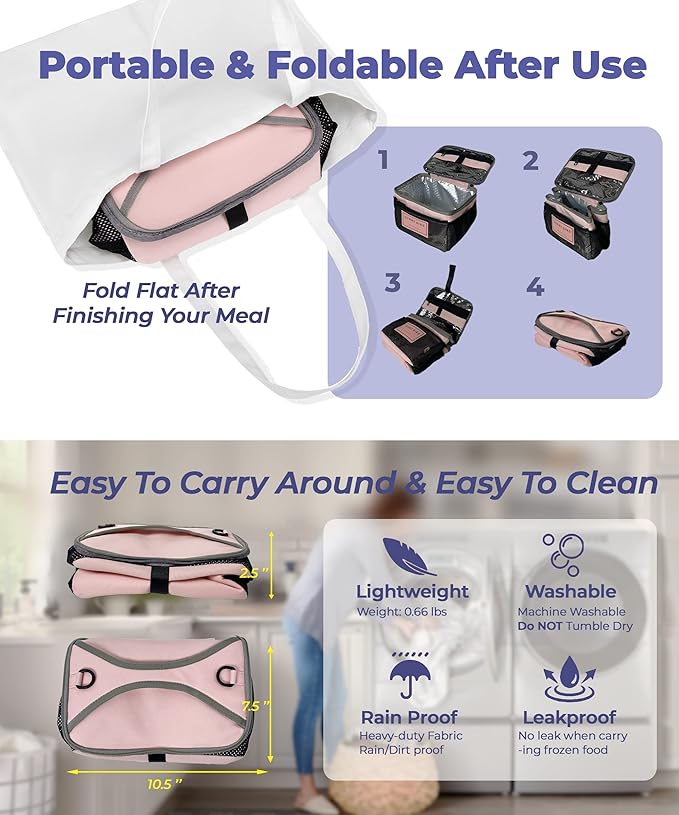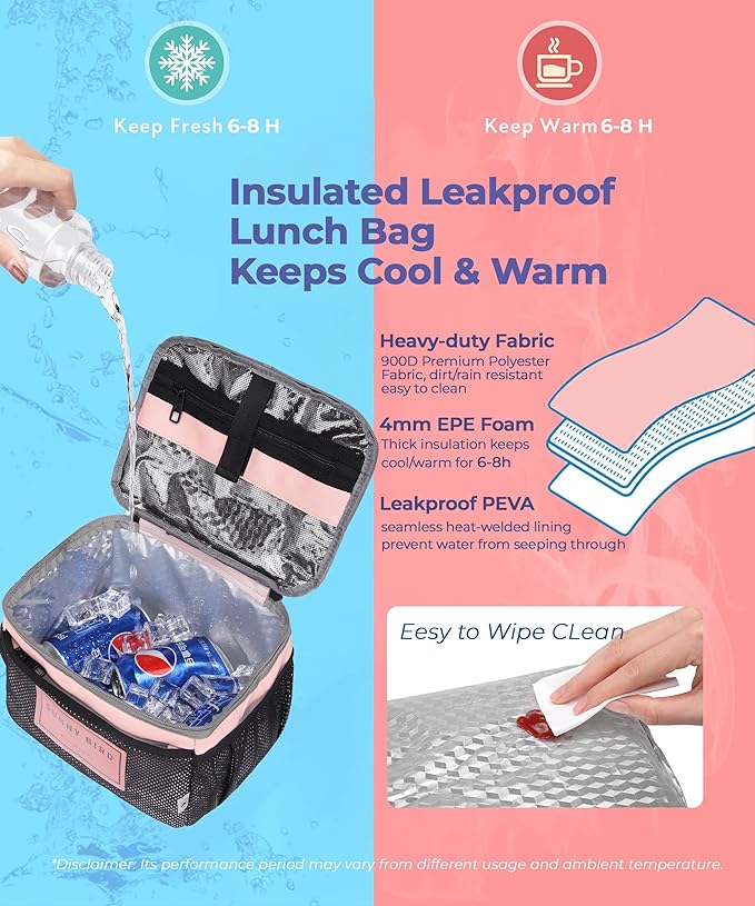 • [New Model New Features & Wide-Open-Flap] Your lunch containers may be carried in and out of the bag horizontally without tilting thanks to the top flap's 9 x 6.25-inch size. For simple access, a dual zipper closure option is given. We care about customers opinions, this is a new model 002 with more zippers and Velcro closure to keep your items stay in place.