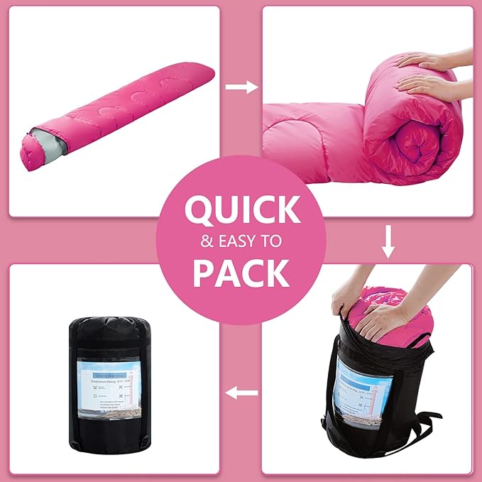 Sleeping Bags for Adults,Kids & Girls-Warm & Cold Weather Lightweight Waterproof Sleeping Bag Backpack with Compact Bag,Great for 3-4 Seasons Hiking,Camping and Outdoor Mountaineering