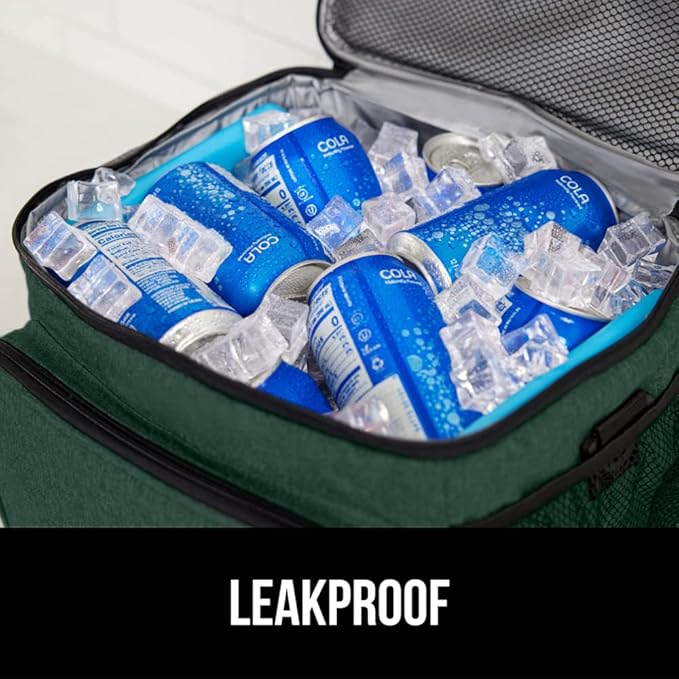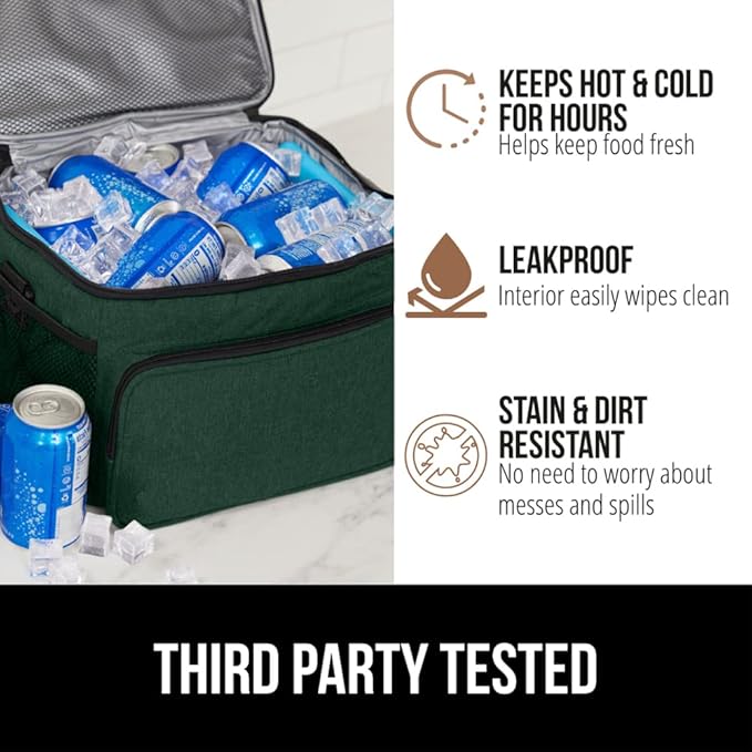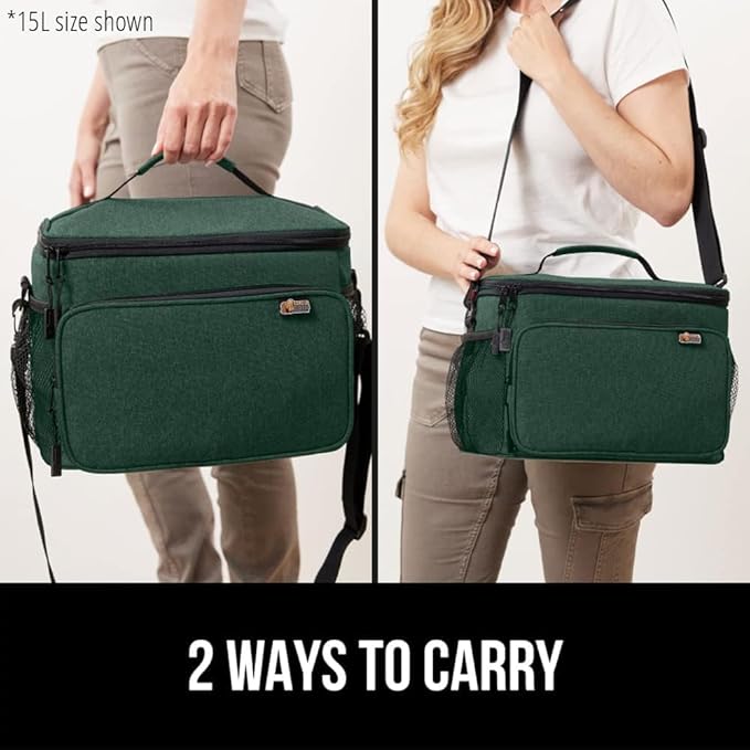 GORILLA GRIP Reusable Insulated Lunch Box Bag, Large Capacity, Leakproof Soft Cooler Bags, Mesh Pockets and Adjustable Strap, Food Tote for Work Camping School, Keep Drinks Cold, 8L, 10x9 Hunter Green