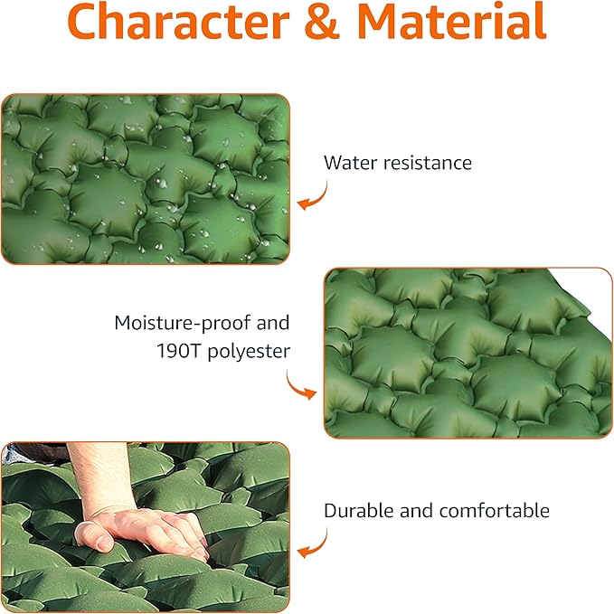 Amazon Basics Camping Sleeping Pad with Quick-Inflate Foot Pump, Water Resistant, Ultralight, Olive Green