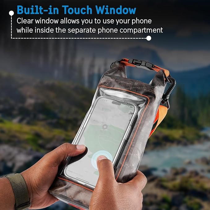 • IP68 Certified Waterproof: With excellent water-resistant seal performance (IP68 rating), this 100% sealed waterproof bag provides comprehensive protection for your phone and other belongings in a variety of environments; The waterproof roll-top closure ensures a perfect seal and keeps out water, snow, dust, sand, and dirt