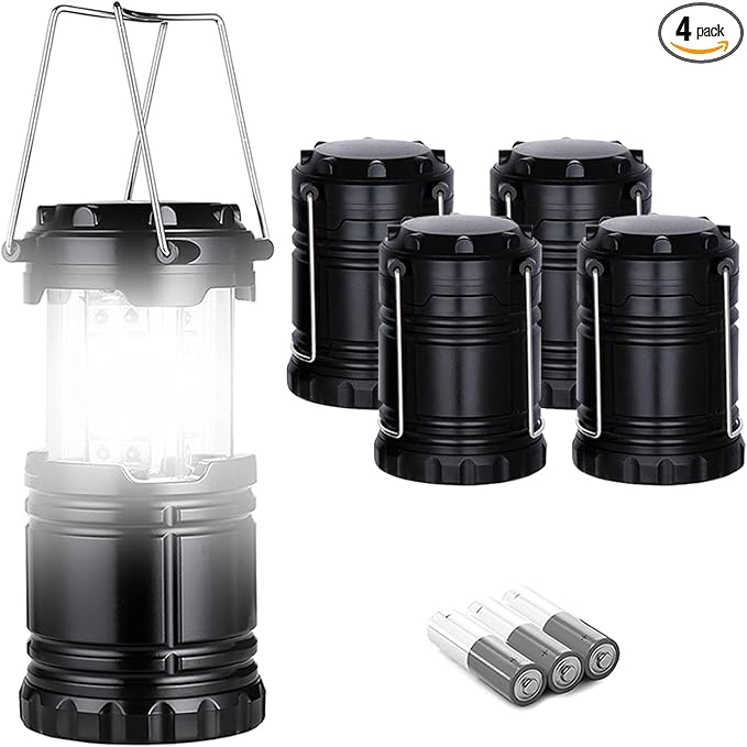 Lantern Camping Essentials Lights, Led Flashlight for Power Outages, Tent Lights for Emergency, Survival Gear and Supplies for Hurricane, Battery Operated Lamp, 4 Pack, Black