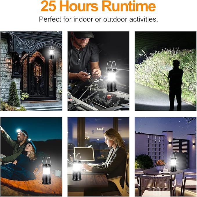 • Easy to Use: Partially expand or collapse the lantern to adjust the brightness or fully collapse it to turn it off.