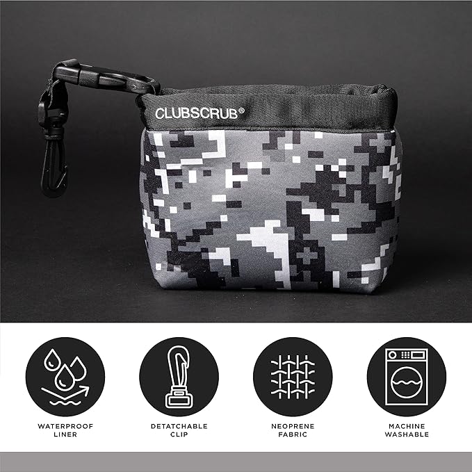 Golf Club and Golf Ball Cleaning Bag, Waterproof Clean Face Technology Liner, Detachable Clip, Machine Washable, Cleans Club Grooves, Dry Exterior (Neoprene or Microfiber Option Available)
