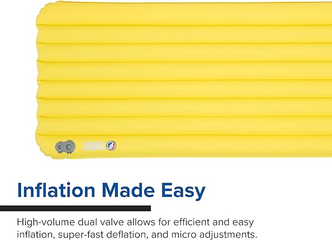 • The high-volume valves with micro adjustments make for fast inflation/deflation and easy fine tuning to your preferred firmness. Save your breath, the pad inflation sack included with your pad makes inflating a breeze. Protective storage sack, replacement valve seal and 3M repair patches also included with your pad.