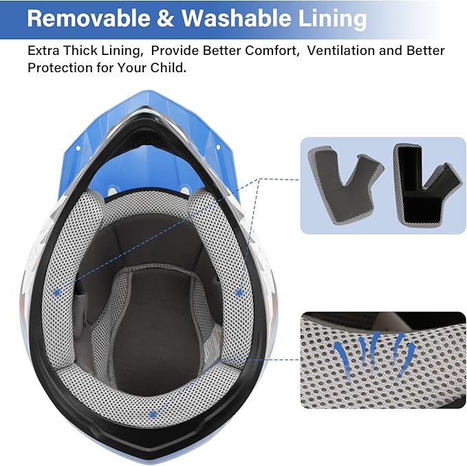 • Special Feature : DOT Youth Kids Motocross ATV Helmets Offroad Street Dirt Bike Go-Kart BMX MX Full Face Helmet Blue w/Shark Mouth Large Size DOT Youth Kids Motocross ATV Helmets Offroad Street Dirt Bike Go-Kart BMX MX Full Face Helmet Blue w/Shark Mouth Large Size