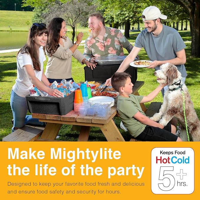 • Mighty Versatility: Mightylite is a professional-grade insulated food pan carrier that's perfect for various uses. The large capacity build can safely keep food warm and fresh for up to 5 hours. It makes a durable insulated food container for service providers and a carry-all drink cooler for the next school soccer game.