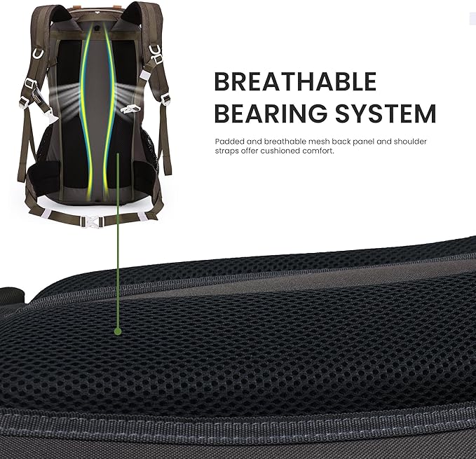 • Comfortable and Breathable: This travel backpack uses breathable mesh padding and a ventilated back system to keep your items dry and ventilate your back. The ergonomically designed structure helps to evenly distribute the weight, making it comfortable to carry while hiking.