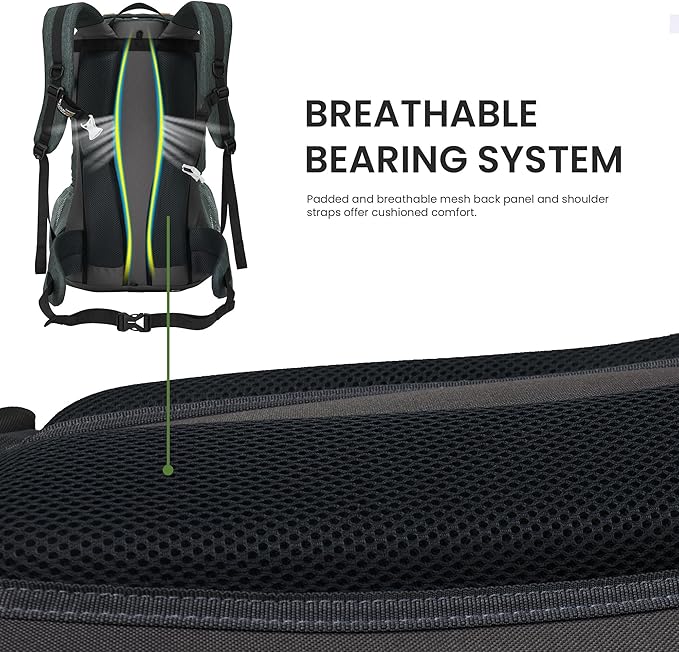 • Comfortable and Breathable: This travel backpack uses breathable mesh padding and a ventilated back system to keep your items dry and ventilate your back. The ergonomically designed structure helps to evenly distribute the weight, making it comfortable to carry while hiking.