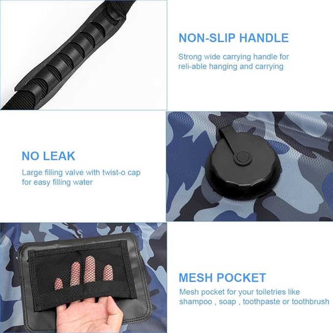 • 【Wildly Use】This camp shower is suit for outdoor camping, hiking, backpacking, self-driving, fishing or hunting.It's the best gift for for Men Husband and Father's Day.The perfect camping accessory for him.