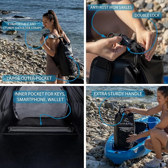 • 💪 Customers Praise The EARTH&RIVER Premium Dry Bag's Thickness 0.50MM, High-Quality Material And Its Effectiveness In keeping Belongings Completely Dry. The Bag Is Spacious And Customers Find It Worth The Price. They Like its Functionality, With One Customer Specifically Mentioning It Works Well As a Fishing Bag, Boating Bag, Kayaking Bag And Camping Bag ✅Material quality ✅Waterproof ✅Size ✅Bag quality ✅Value for money