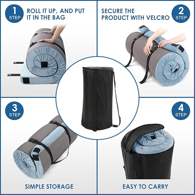 • 【Versatile & Portable】: Includes a sturdy carry bag with straps for easy rolling and storage. Ideal for hiking, tent camping, road trips(for SUV/RV/Van/Truck/Camper) as a temporary mattress, offering greater comfort than inflatable options. Also suitable as a guest bed for sleepover, floor mat, cot mattress or tatami mattress.