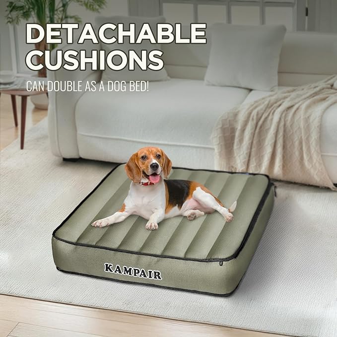 • FLEXIBLE COMFORT OPTIONS: Adaptable to various needs, this air mattress can serve as a cozy bed or transforms into a lounge chair using the included strap. The zippered sections are easy to attach or detach, allowing each cushion to function as a floor pad or a pet bed, offering practical solutions to match your lifestyle
