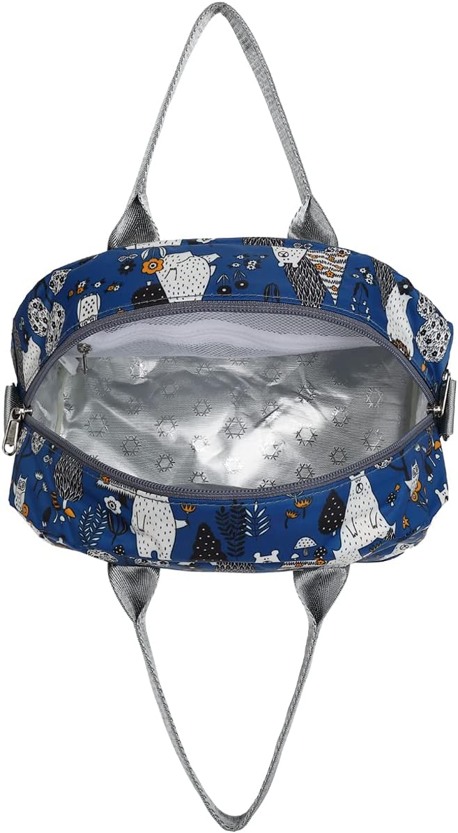 FlowFly Insulated Lunch Bag With Shoulder Strap for Women, Men, and Kids, Large and Reusable, Handle, Freezable Work and School Travel Tote and Meal Prep Organizer,Owl