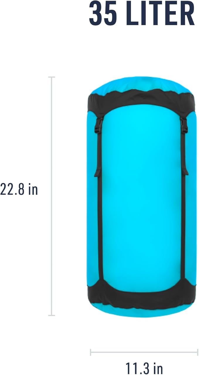 • 35-liter compression sack measures 11.3 x 22.8 inches and weighs 0.26 pounds; volume is 35 liters