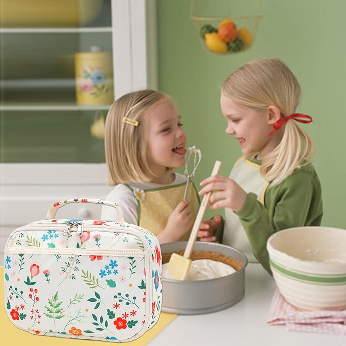 Kids Lunch Box Boys Girls Insulated Lunch Cooler Bag Reusable Lunch Tote Kit for School Travel(Flower)