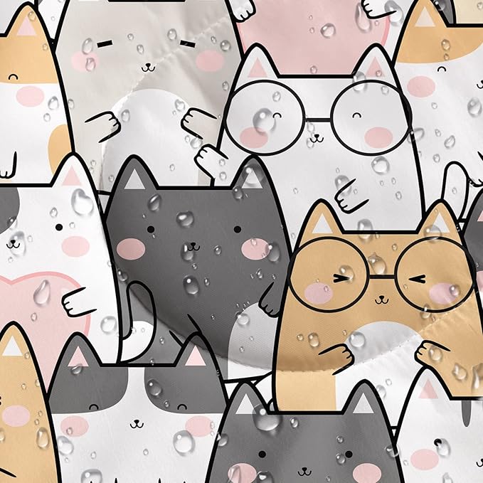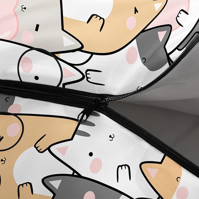 • Special Feature : Kawaii Cat Print, Drawstring Hood, Zipper at the Foot