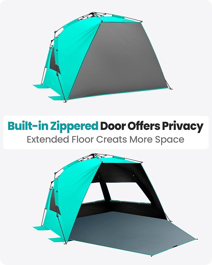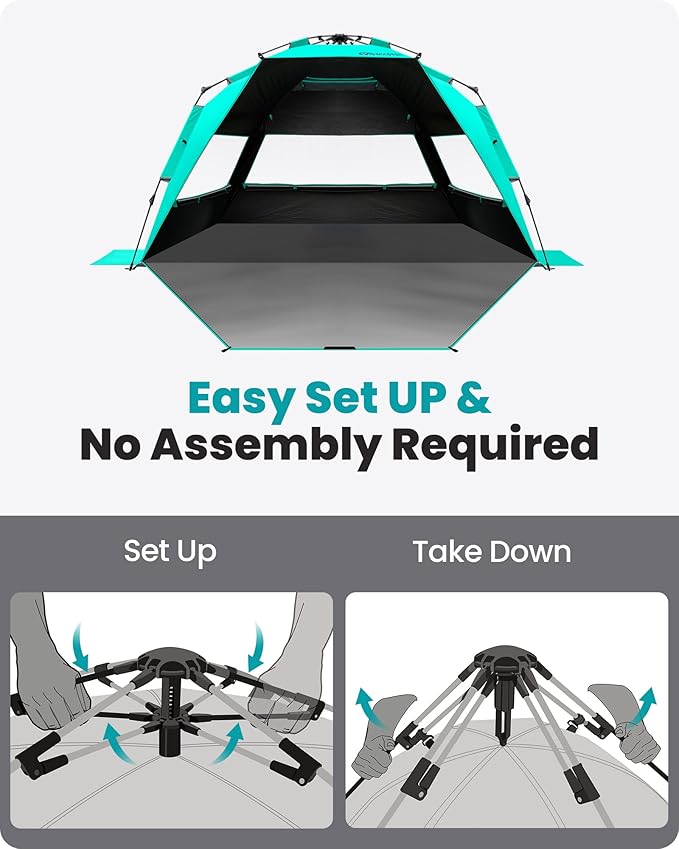 • Blackout Shelter Technology: Our Instant Shade Blackout Shelter is different from others on the market as it not only blocking 99.95% of UVA and UVB rays (UPF 50+), also eliminates 95% sunlight to protect your skin and objects for a more comfortable rest anytime of day