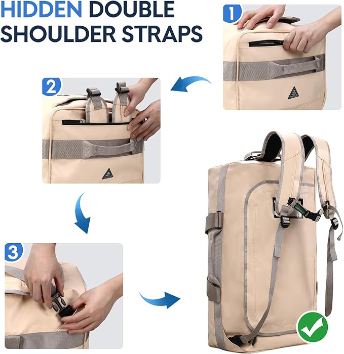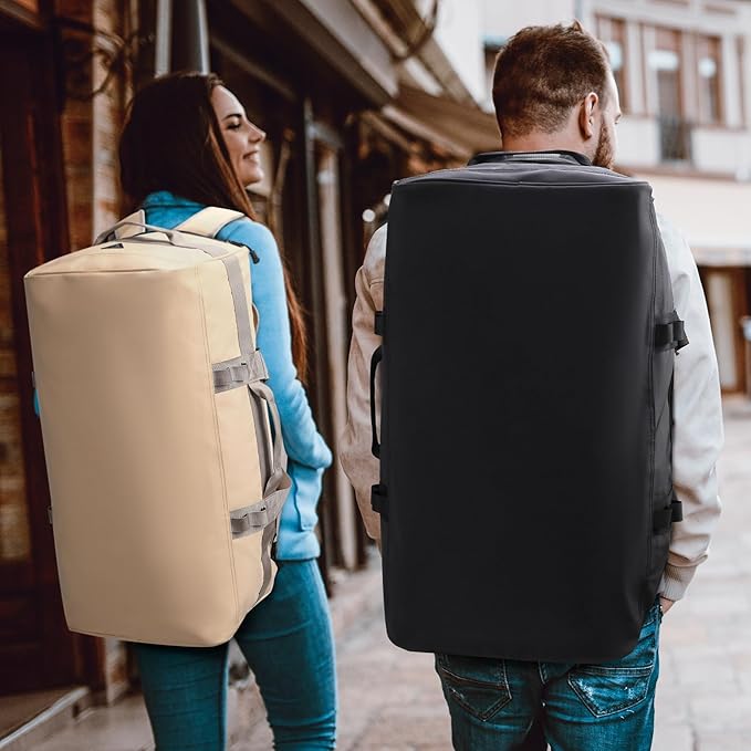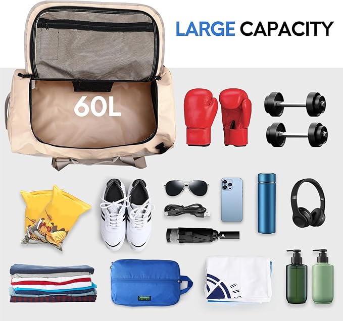 Haimont Large Sports Duffel Backpack Bag for Men, Travel Duffel Bags with Backpack Straps, Heavy Duty and Water Resistant, Beige,60L