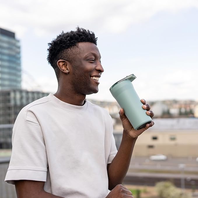 BrüMate Pour Over 20oz Insulated Travel Coffee Mug | 2-in1 Travel Coffee Maker with 100% Leak Proof Lid | Insulated Coffee Tumbler | Travel & Camping | Comes with Filter Dripper (Sage)