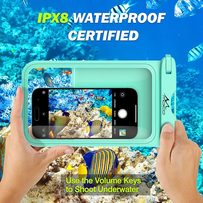 • Buoyancy and IPX8 Certified Waterproof - Tested over 1000 times with no leaks or water damage during 100 feet/ 30 meters. The waterproof phone pouches also offer buoyancy, giving you a more worry-free experience when you are swimming. You no longer have to worry about your phone sinking to the bottom of the ocean because it will float instead.