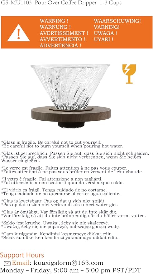 • 【Safe material】The filter is made of borosilicate glass with a walnut handle. The material is safe and odorless, high temperature resistant and easy to clean, BPA free.