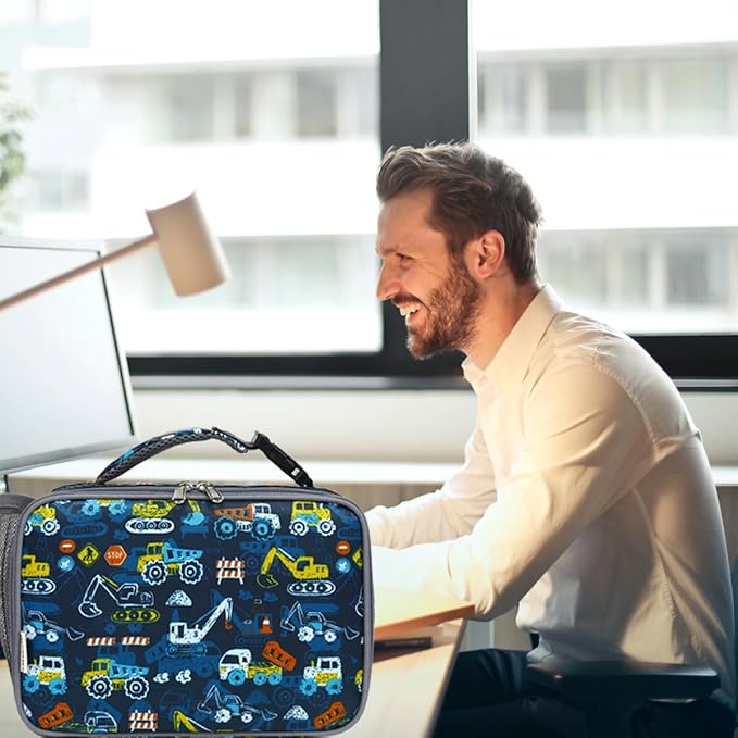 Insulated Lunch Box for School, Thermal Reusable Durable Freezable Lunch Bags for Kids Boys Girls Men Women - Small Soft Cooler Portable Lunch Tote Kit for Work Picnic Travel,Excavator