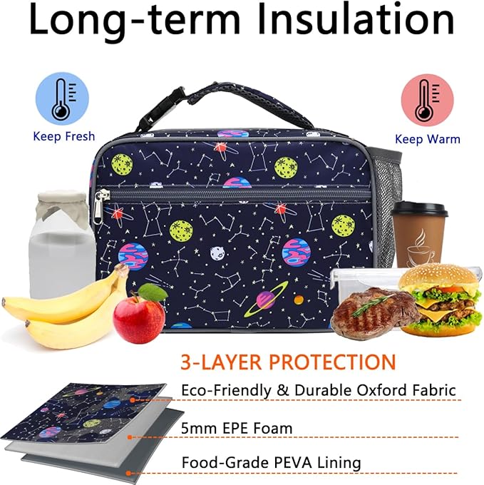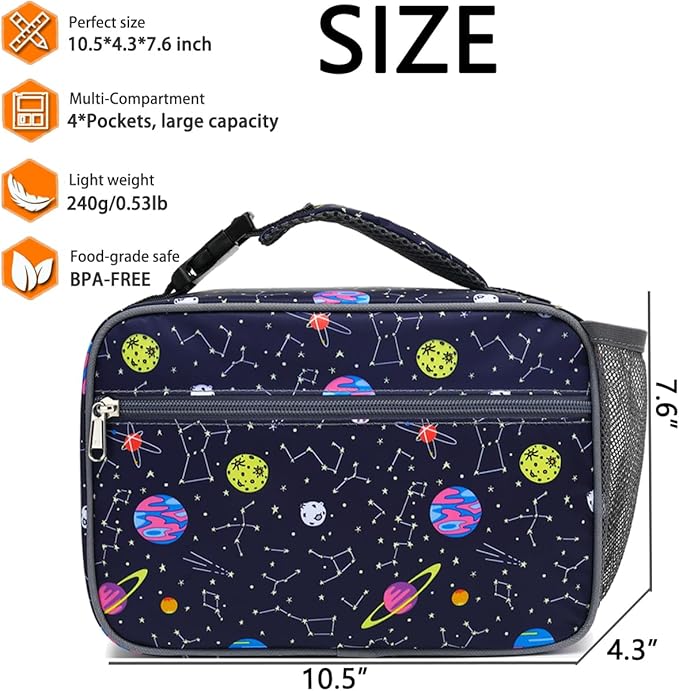 Insulated Lunch Box for School, Thermal Reusable Durable Freezable Lunch Bags for Kids Boys Girls Men Women - Small Soft Cooler Portable Lunch Tote Kit for Work Picnic Travel,Constellation
