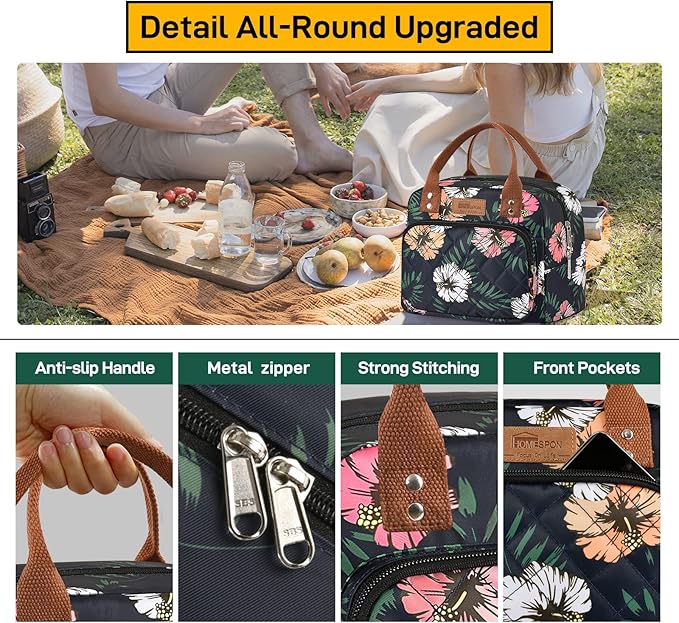 • 【STYLISH & FUNCTIONAL】Featuring a classic and spacious front pocket, as well as stylish patterns to choose from, this lunch bag is practical for work, picnics, or travel. It also makes for an ideal gift.