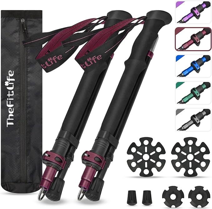 TheFitLife Collapsible Trekking Poles for Hiking – Lightweight Folding Walking Sticks for Men and Women with Extra-Long Foam Handle and Metal Flip Lock