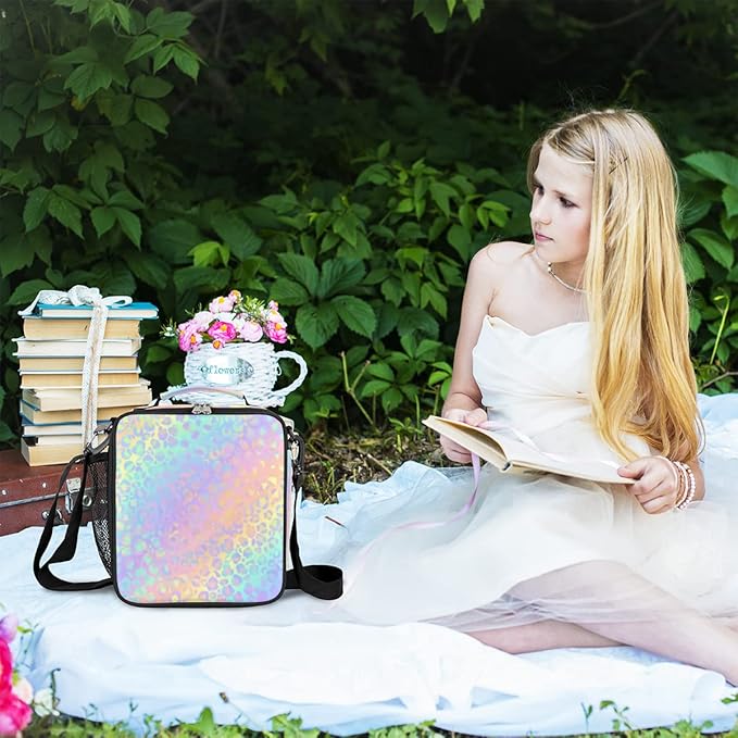 Leopard Print Kids Lunch Bag Rainbow Leopard Skin Insulated Lunch Box Mini Cooler Back to School Thermal Meal Tote Kit Bento Tote Bags Thermal Lunchbox for Boys Girls