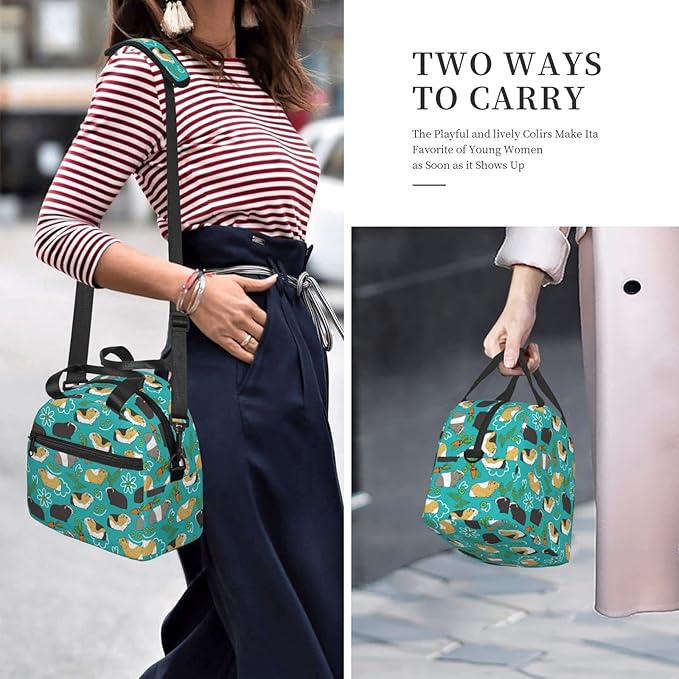 bassyil Guinea Pig Lunch Box Reusable Insulated Totes Lunch Bag Thermal Cooler Adjustable Shoulder Strap Bag For Men Women