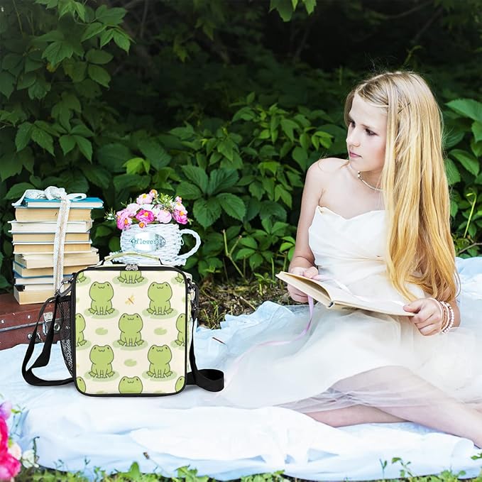Pardick Cute Frog Kids Lunch Bag Animal Green Frogs Insulated Lunch Box for Boys Girls Waterproof Lunch Bento Tote Bags Thermal Lunchbox School Lunchbox Insulated with Shoulder Strap
