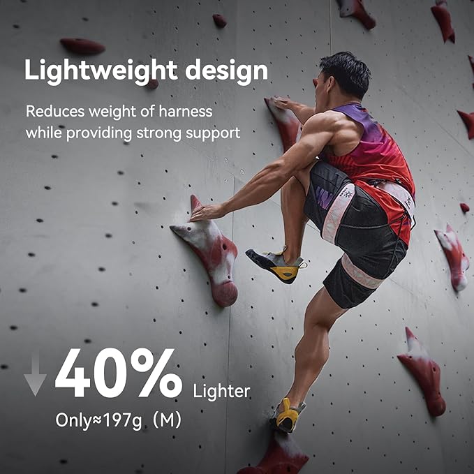 • Weight: S 185g; M 197g; L 210g; Made of high-strength ultra-high molecular weight polyethylene fiber, super lightweight, super breathable, allowing you to climb without hindrance and giving you the greatest degree of body freedom.
