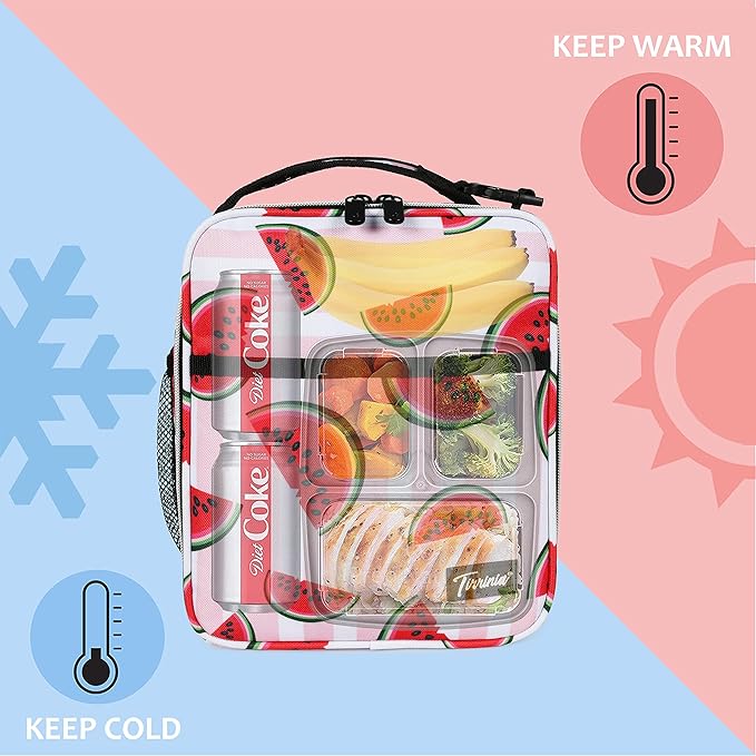 Tirrinia Small Insulated Lunch Bag for Girls, Mini Portable Reusable Thermal Lunch Box Cooler Tote, Watermelon
