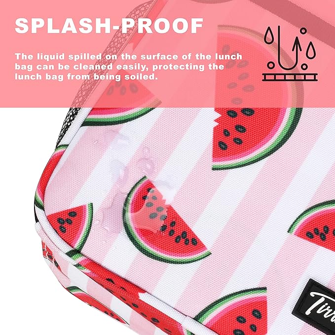 • SPLASH PROOF SURFACE - The surface of Tirrinia lunch bag is spill-resistant, if soup, rain, dirty water spill on the surface of the lunch bag, you can wipe it up with tissue or towel, protect the lunch bag from being soiled.