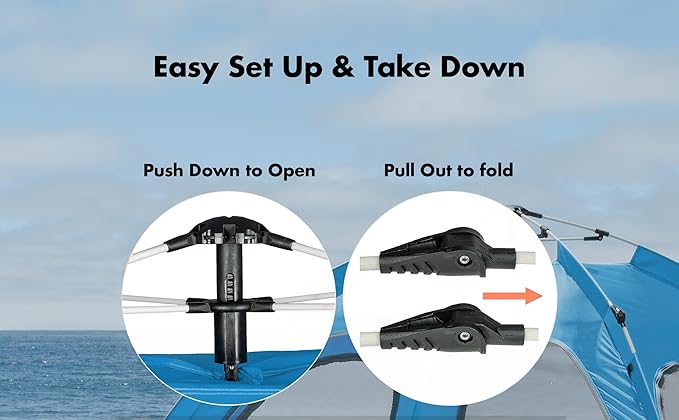 • INSTANT SETUP & PORTABLE DESIGN: Experience effortless deployment! This instant beach tent pops up in seconds and folds down compactly (28"x6"x6") into the included carry bag with ease; designed for single-person setup, making spontaneous beach or park days a breeze