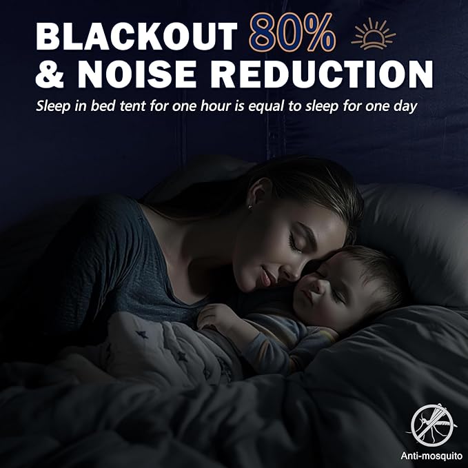 • Original design - We pioneered this rectangular large space bed tent, designed to improve sleep quality and create secrecy. Sleeping for 1 hour is equivalent to sleeping for 1 day. We have helped many people meet their needs. Let our bed tent start your wonderful sleep journey